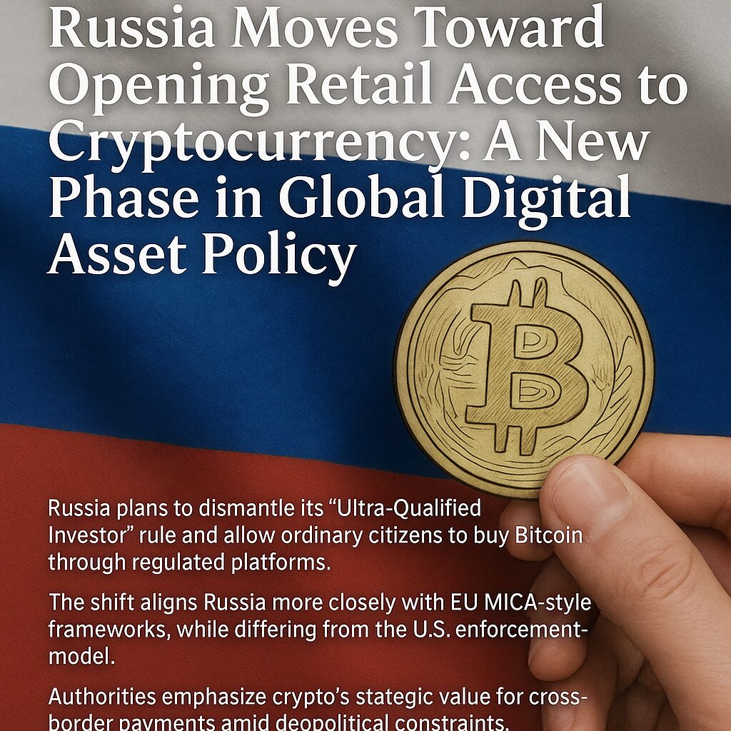 - Russia plans to dismantle its “Ultra-Qualified Investor” rule and allow ordinary citizens to buy Bitcoin through regulated platforms.