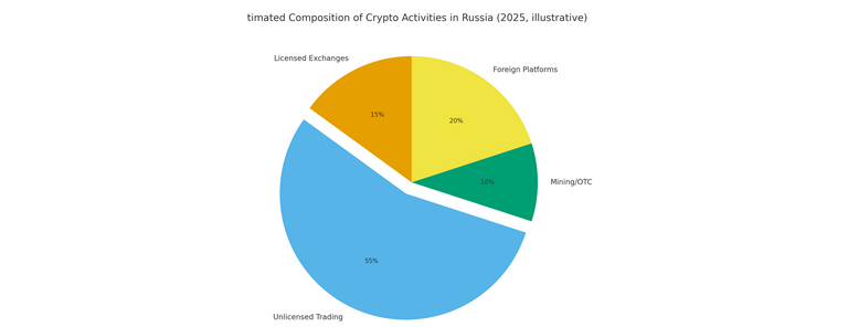 Despite these steps, unlicensed trading remains strong. Estimates suggest some 20 million Russians hold cryptoassets, with internal wallet balances around US$40 billion (≈ US$400 billion reported by some sources, though differing estimates exist). The absence of a clear framework for retail trading has produced a wide unregulated space.