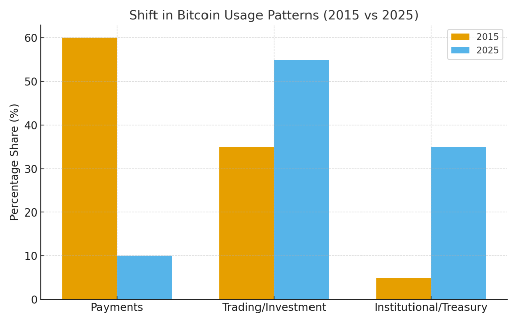 This shift matters for blockchain practitioners. If a token or protocol is built with payments in mind, observing Bitcoin’s trajectory raises questions: is the value captured via utility (payments) or via scarcity and asset-status?