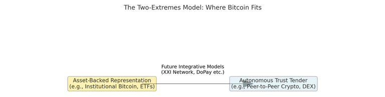 • On the “Autonomous Trust Tender” side: The original peer-to-peer cash vision remains compelling, and newer chains and protocols may better realise this than Bitcoin itself.
