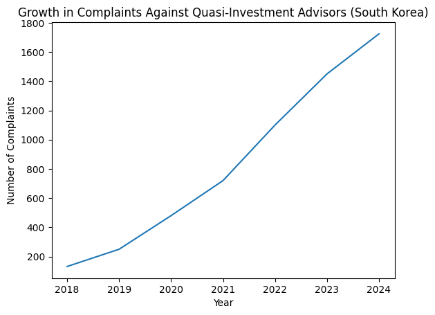 - Complaints against quasi-investment advisors surged from 132 in 2018 to 1,724 in 2024.