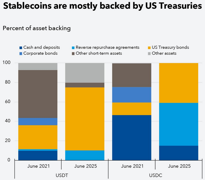 - 88% of stablecoin reserves are held in U.S. Treasuries or bank deposits