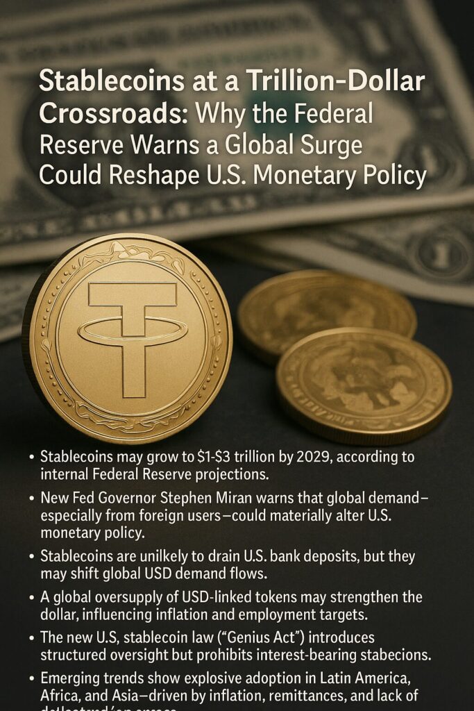 Stephen Miran’s warning may become a key turning point in U.S. monetary policy thinking. Stablecoins were once considered a niche tool for crypto traders. Today, they are becoming a global monetary engine shaping dollar demand, foreign exchange dynamics, and Treasury markets.