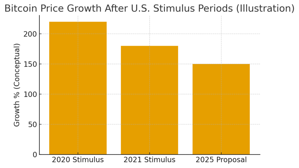 Large-scale fiscal stimulus tends to stoke fears about inflation and currency debasement. As fiat monetary expansion accelerates, the concern is that the purchasing power of dollars will erode. In that context, assets with a capped supply—most clearly Bitcoin—gain renewed appeal as inflation hedges or safe havens.