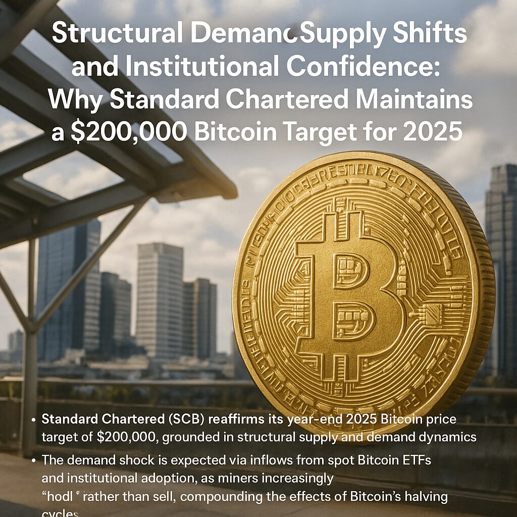 - Standard Chartered (SCB) reaffirms its year-end 2025 Bitcoin price target of $200,000, grounded in structural supply and demand dynamics