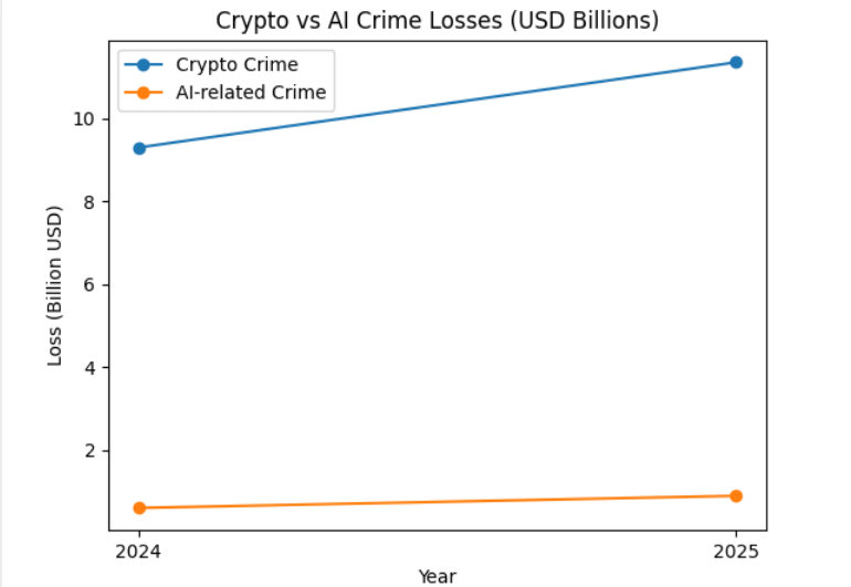 Crypto vs AI Crime Losses (USD Billions, 2024–2025)