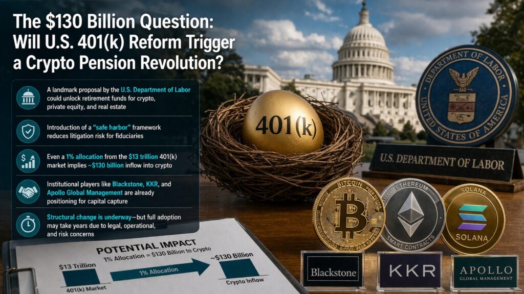The global cryptocurrency market may be on the brink of one of its most consequential structural transformations yet—not driven by retail speculation, but by retirement capital. On March 30, 2026, the U.S. Department of Labor formally introduced a regulatory proposal that could reshape how Americans invest their retirement savings.