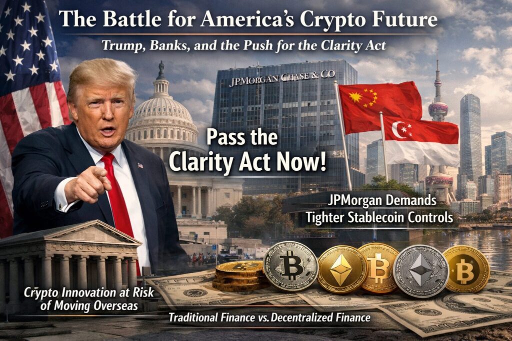 At the center of the debate is a proposed piece of legislation known as the Clarity Act, which seeks to define the regulatory framework for cryptocurrencies in the United States. Trump has urged Congress to pass the bill quickly, arguing that regulatory clarity is essential if the United States hopes to remain competitive in the global blockchain economy.