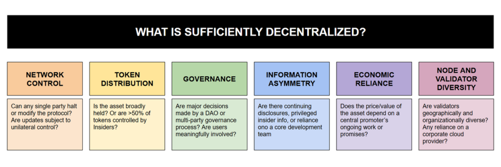 This division aims to resolve the long-standing turf war between regulators. However, classification depends on definitions that remain unsettled—particularly what constitutes “sufficient decentralization” to escape securities treatment.
