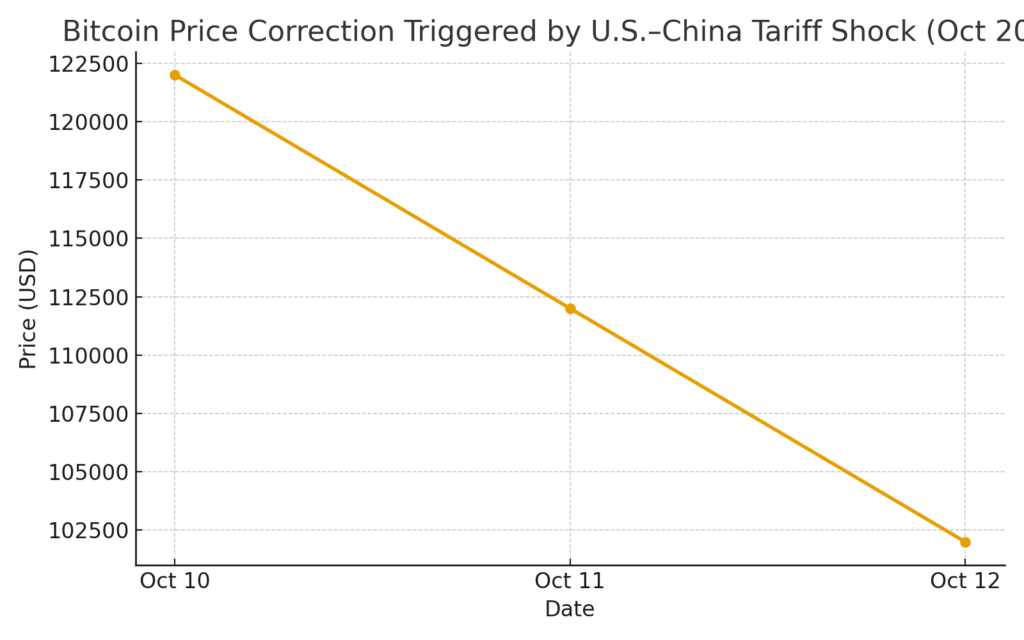 What catalyzed this purge? Mow and the referenced article point to a combination of macro shocks and crypto-specific fragilities. The proximate trigger was a comment by U.S. President Donald Trump, raising the possibility of hiking tariffs on China up to 100%. That shock rippled through global markets, including the crypto space. The article claims Bitcoin fell from about $122,000 to $102,000, inflicting over $125 billion in market cap loss across the sector in just a couple of hours.