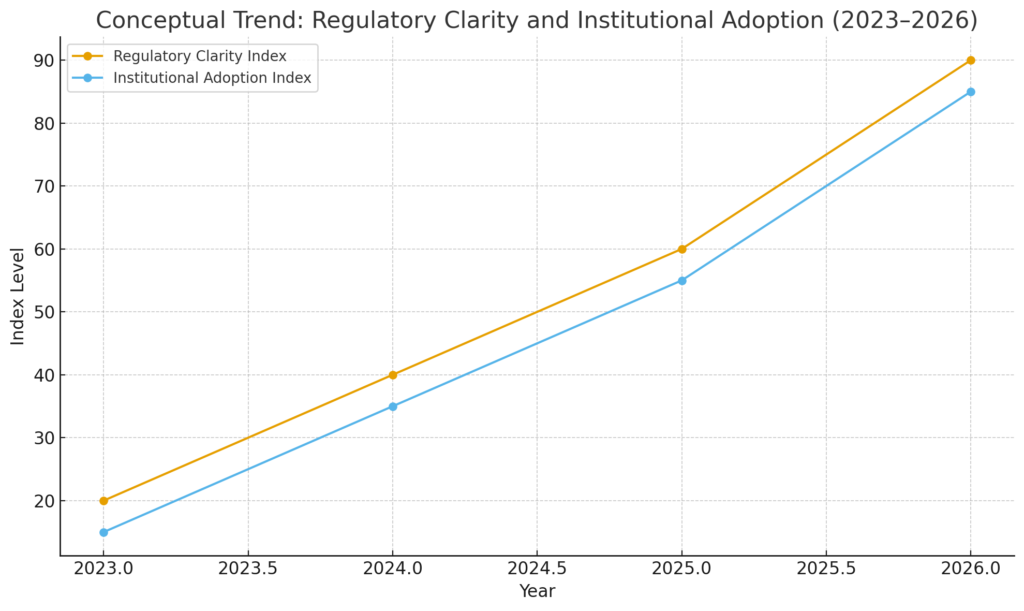 This conceptual chart illustrates the expected parallel rise in regulatory clarity and institutional adoption from 2023 to 2026.
