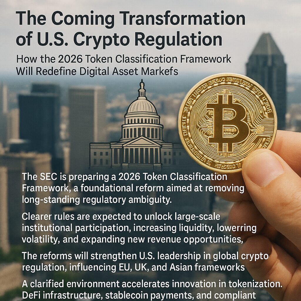 - The SEC is preparing a 2026 Token Classification Framework, a foundational reform aimed at removing long-standing regulatory ambiguity.