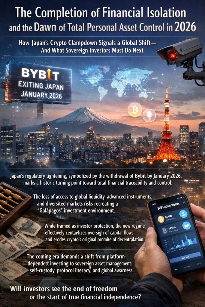 The decision by Bybit to fully exit the Japanese market—setting January 2026 as the final deadline for Japanese residents—is not merely the shutdown of a service. It is the collapse of the last stronghold that allowed individuals to interact with global liquidity, advanced derivatives, and innovative financial products beyond the reach of domestic constraints.