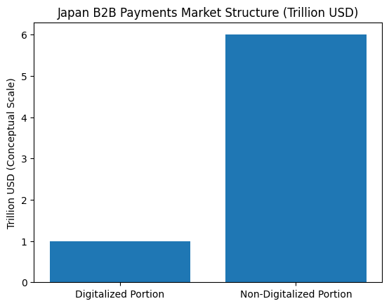 - Japan’s B2B payment market exceeds $7 trillion annually, yet remains largely undigitalized.