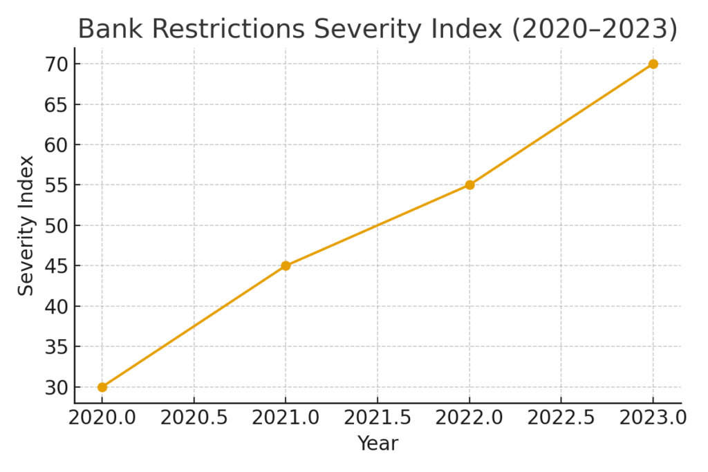 - Banks restricted account openings for crypto companies.