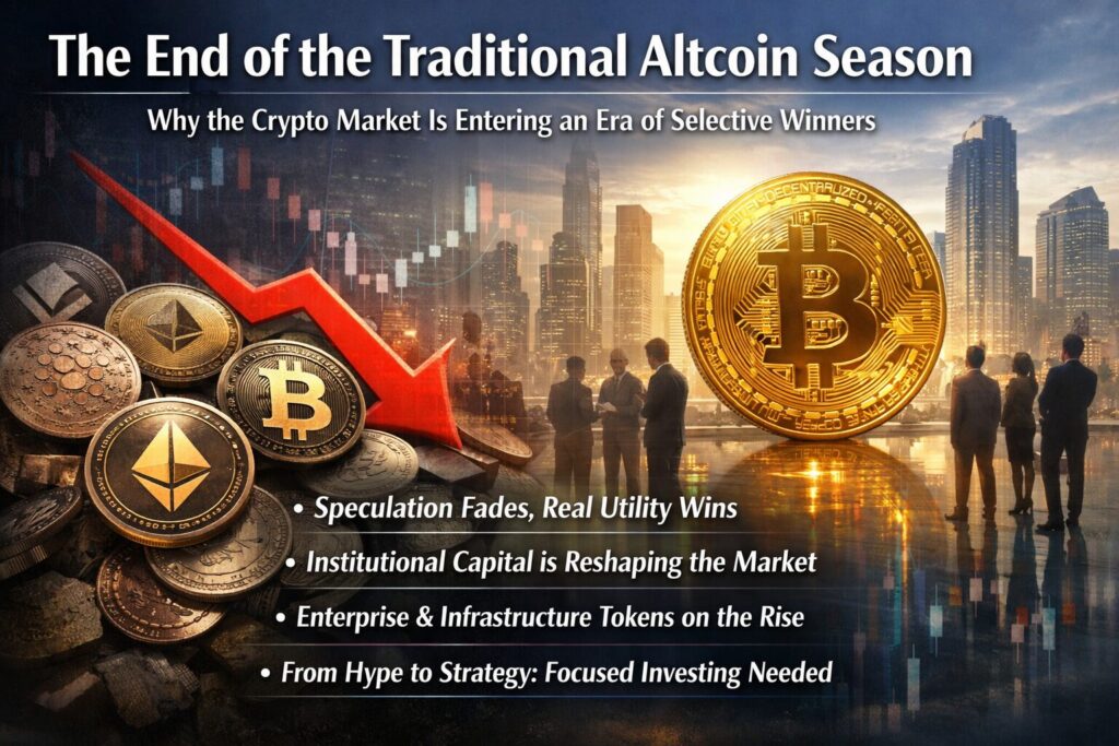 The traditional altcoin season—where nearly every token rises together—may be fading as institutional capital, technological development, and real-world adoption reshape the industry.