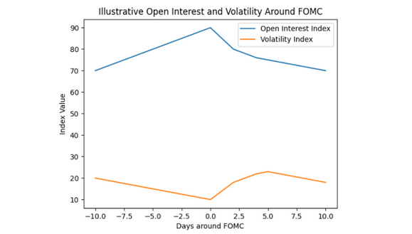This figure highlights the typical pre-event buildup in futures open interest and suppressed volatility, followed by post-event deleveraging and volatility expansion.