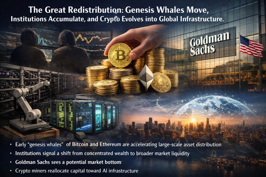 - Early “genesis whales” of Bitcoin and Ethereum are accelerating large-scale asset distribution