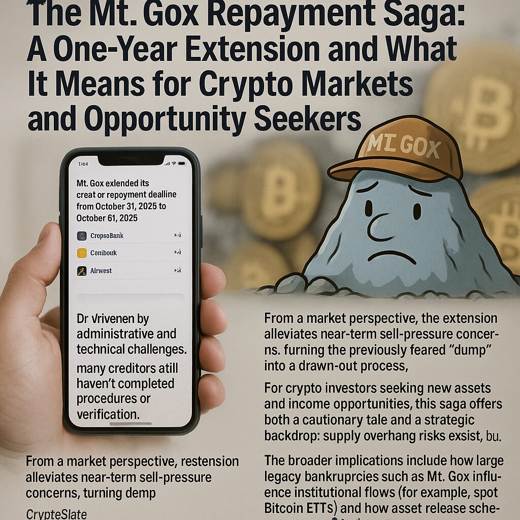 The newest twist in the Mt. Gox saga — the extension of the creditor repayment deadline to October 31, 2026 — is more than just another delay. For the crypto asset space it reduces an immediate supply-shock risk, creating a somewhat calmer backdrop for Bitcoin and potentially better conditions for altcoins and new token initiatives. For readers seeking new assets, revenue opportunities, and practical blockchain solutions, the current moment offers both a window and a set of cautions.