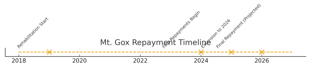 On 27 October 2025 the rehabilitation trustee of Mt. Gox announced that, with court approval, the deadline for all repayments to creditors has been extended from 31 October 2025 to 31 October 2026.