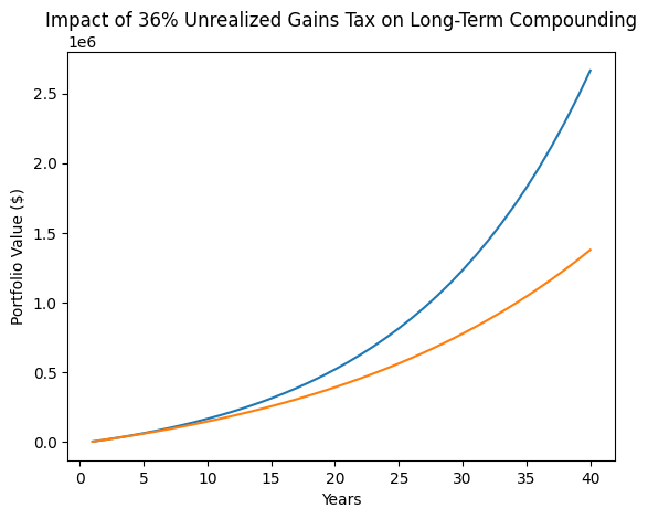 This is not merely a political argument. It is a mathematical one. Compounding is nonlinear. Taxing annual appreciation effectively truncates exponential growth.