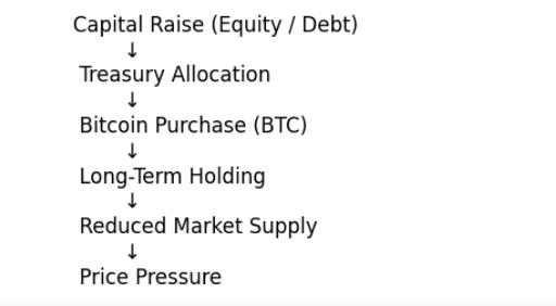 This approach allows MicroStrategy to continuously raise capital without liquidating its Bitcoin holdings. Instead of selling BTC during price increases, the company doubles down—raising funds externally to acquire more.