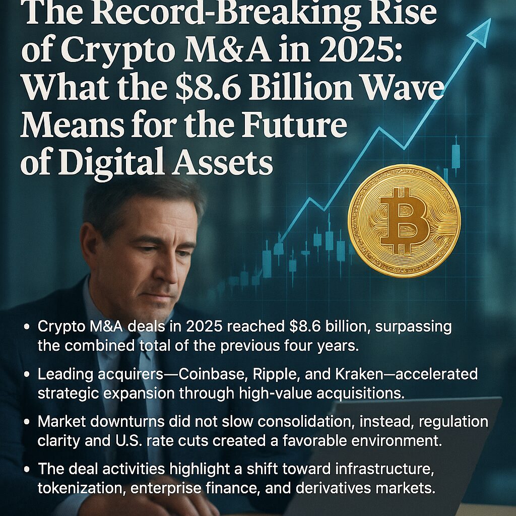- The 2025 M&A boom signals growing institutional confidence and a maturing crypto-financial ecosystem.