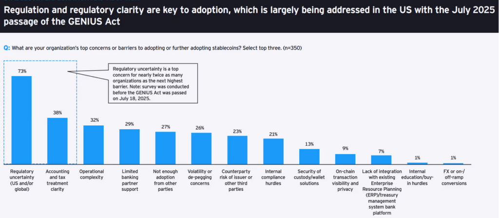 - Asia-Pacific now represents the fastest-growing stablecoin market, with 56% of institutional investors using stablecoins for settlement and treasury functions.