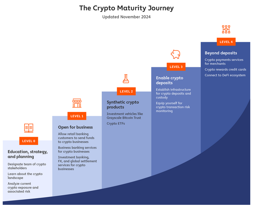 - Approval of spot Bitcoin ETFs in the U.S. marked the beginning of a “second phase” of institutional adoption.