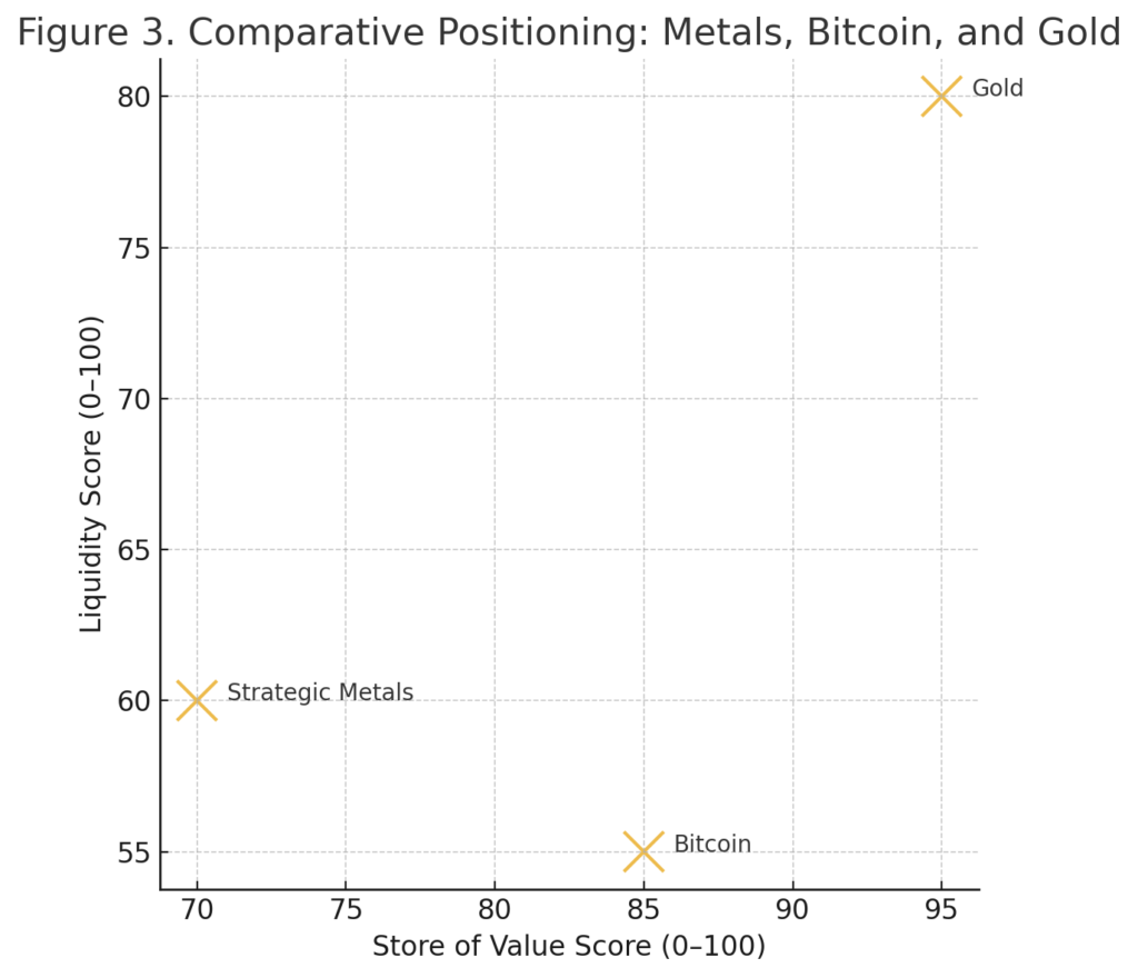 Moreover, Bitcoin lacks the industrial utility that gives strategic minerals their real-world backbone; its value is purely based on demand, network effect, and perceived scarcity.