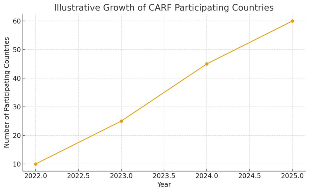 This growth trajectory suggests that by its 2027 implementation, CARF may have broad global coverage similar to—or even larger than—the existing CRS system.