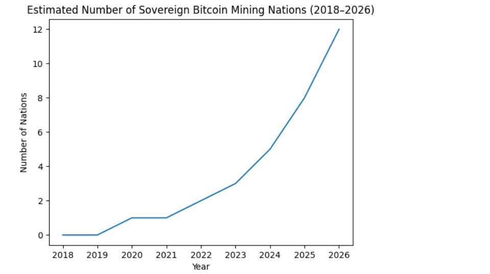 This graph illustrates the increasing number of sovereign entities exploring or deploying state-aligned Bitcoin mining strategies from 2018 to 2026. Energy-rich nations are converting stranded energy into Bitcoin reserves, further tightening supply.