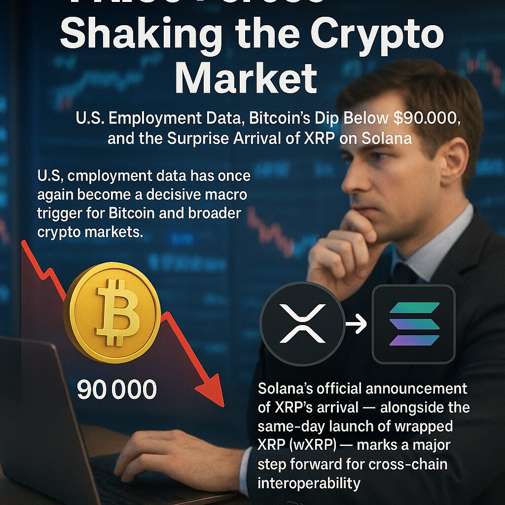 The crypto market is currently being reshaped by three powerful forces acting simultaneously. Macroeconomic indicators such as U.S. employment data continue to dictate liquidity conditions and investor sentiment. Psychological price levels, exemplified by Bitcoin’s move below $90,000, amplify short-term volatility during periods of uncertainty. Meanwhile, technological progress — highlighted by Solana’s integration of XRP — is redefining how value moves across blockchain ecosystems.