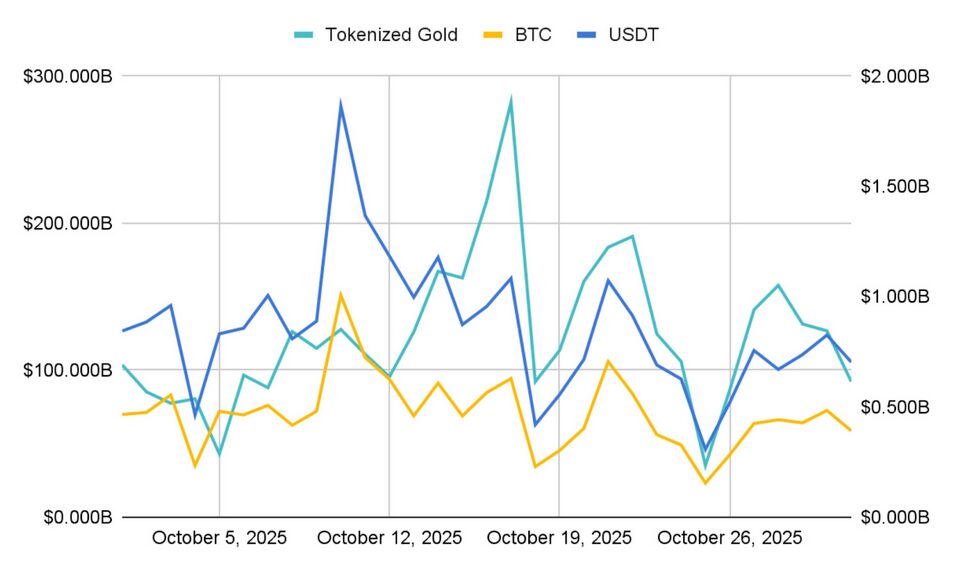 • Tether Gold (XAUT) has seen its market share decline from around 60% to just over 50%, yet it remains the dominant tokenized gold product.