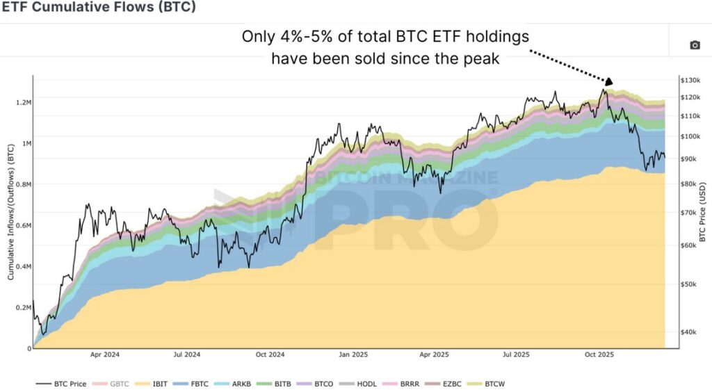 Despite the recent positive flow, Bitcoin ETF assets under management (AUM) remain approximately 30% lower year-to-date. This contraction reflects: