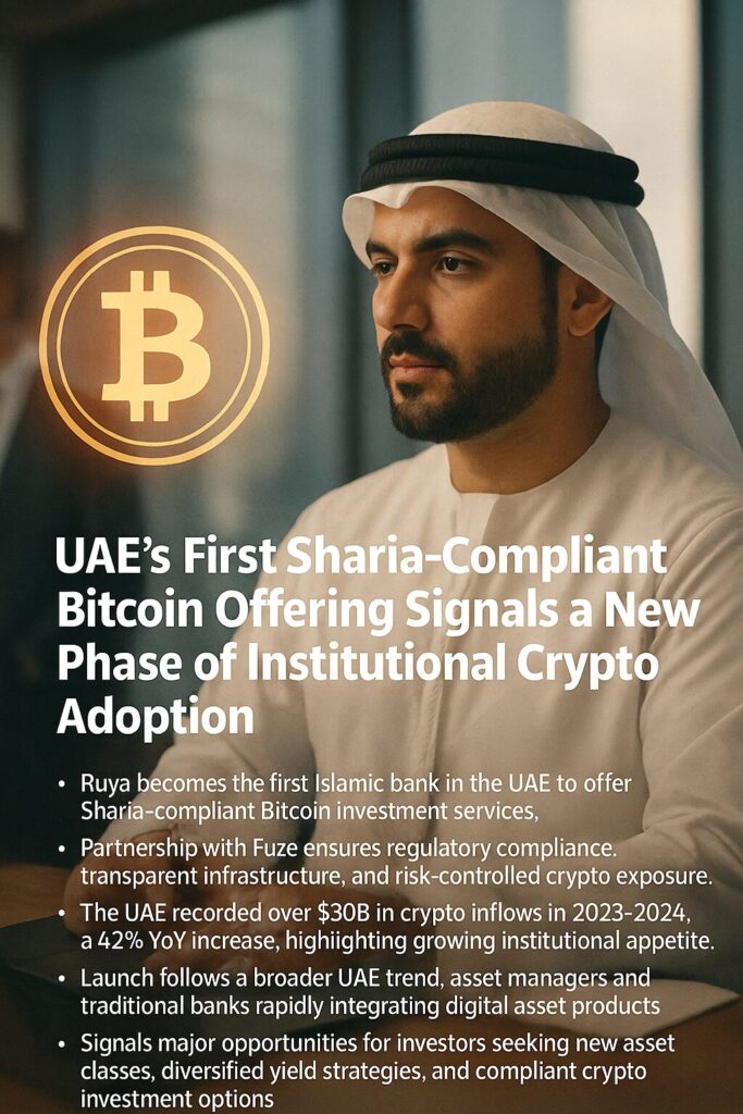 In December 2025, the UAE reached a notable turning point in the evolution of digital assets within Islamic finance. Ruya, an Islamic bank operating under UAE regulatory oversight, officially launched Sharia-compliant Bitcoin investment services through collaboration with Fuze, a licensed digital asset infrastructure provider.