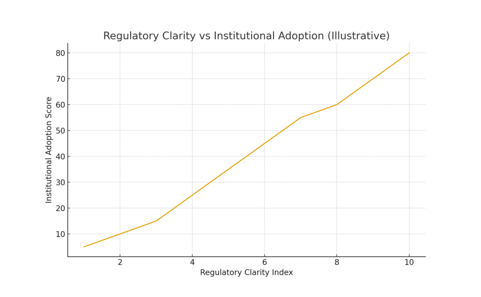 Illustrates the relationship between regulatory clarity and institutional adoption (illustrative).
