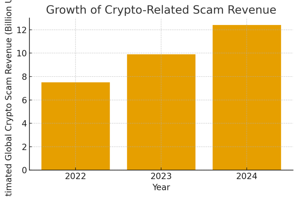 Reuters estimates that crypto-linked scam revenue reached $9.9 billion in 2024, and as more datasets are analyzed, this figure may reach $12.4 billion. The FBI classifies crypto investment fraud as the costliest category of online crime, with victims reporting over $5.6 billion in losses in 2023 alone.