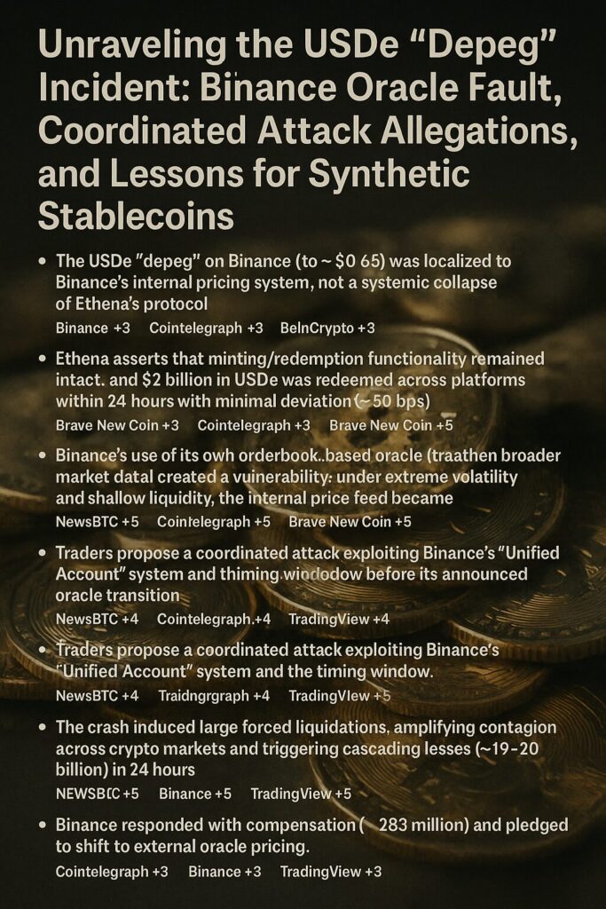 Unraveling the USDe “Depeg” Incident: Binance Oracle Fault, Coordinated Attack Allegations, and Lessons for Synthetic Stablecoins