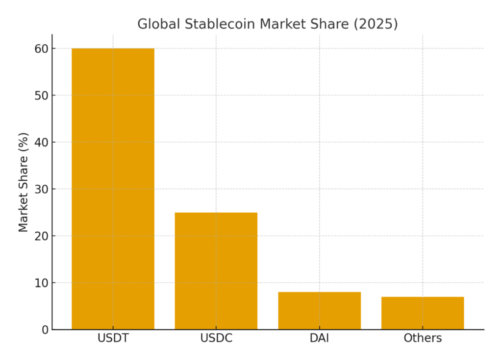- While USDT remains dominant, its market share among stablecoins has slightly dropped (e.g., from 70 % to ~60 %) as alternatives scale.