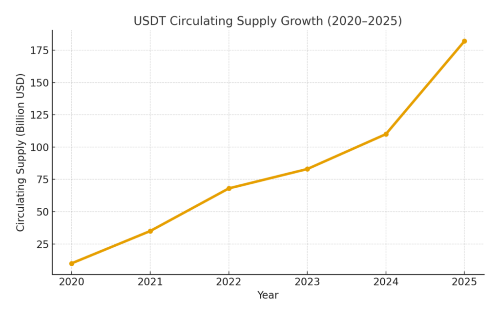 - Much of this expansion is driven by adoption in emerging markets—especially in Africa and parts of Asia—where USDT is used for savings, remittances, cross-border payments and as a hedge against inflation.