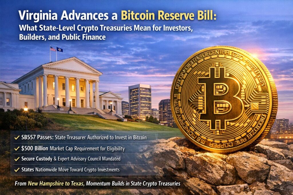 Over the past several years, Bitcoin’s role has expanded from a speculative asset to a balance-sheet instrument discussed in boardrooms, asset-manager committees, and now state governments. The latest signal comes from Virginia, where lawmakers have advanced a bill that would allow the state to hold Bitcoin as part of a strategic digital-asset reserve. For readers searching for new crypto assets, next revenue streams, or practical blockchain use cases, this development matters not because it guarantees price appreciation, but because it institutionalizes demand under conservative rules—reshaping liquidity, custody, reporting, and compliance across the ecosystem.