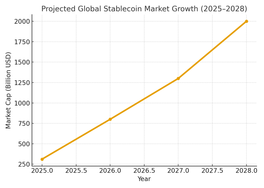 - The U.S. Department of the Treasury and other institutions project that stablecoins could reach roughly US $2 trillion by 2028.