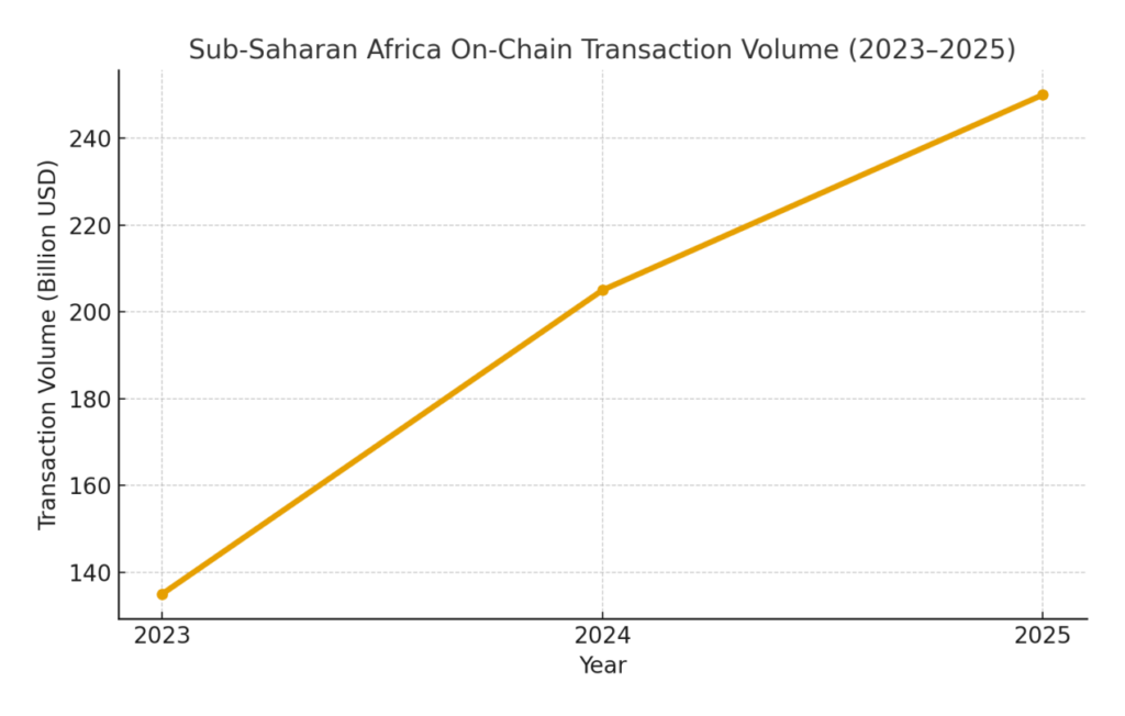 In recent years, Sub-Saharan Africa has recorded some of the highest year-on-year growth rates in cryptocurrency usage globally. According to Chainalysis, between July 2024 and June 2025, on-chain transaction volumes from Sub-Saharan Africa surged, with March 2025 alone reaching nearly US $25 billion, driven largely by a currency devaluation in Nigeria.