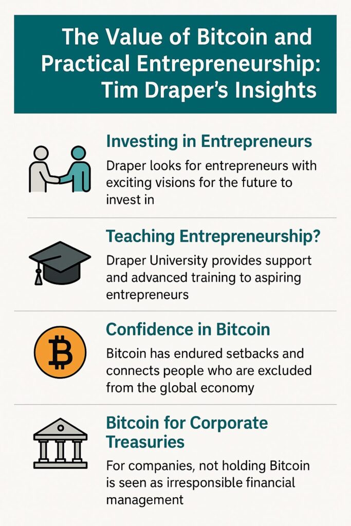 - Draper’s strong conviction that corporations and even governments must hold Bitcoin or risk being irresponsible.