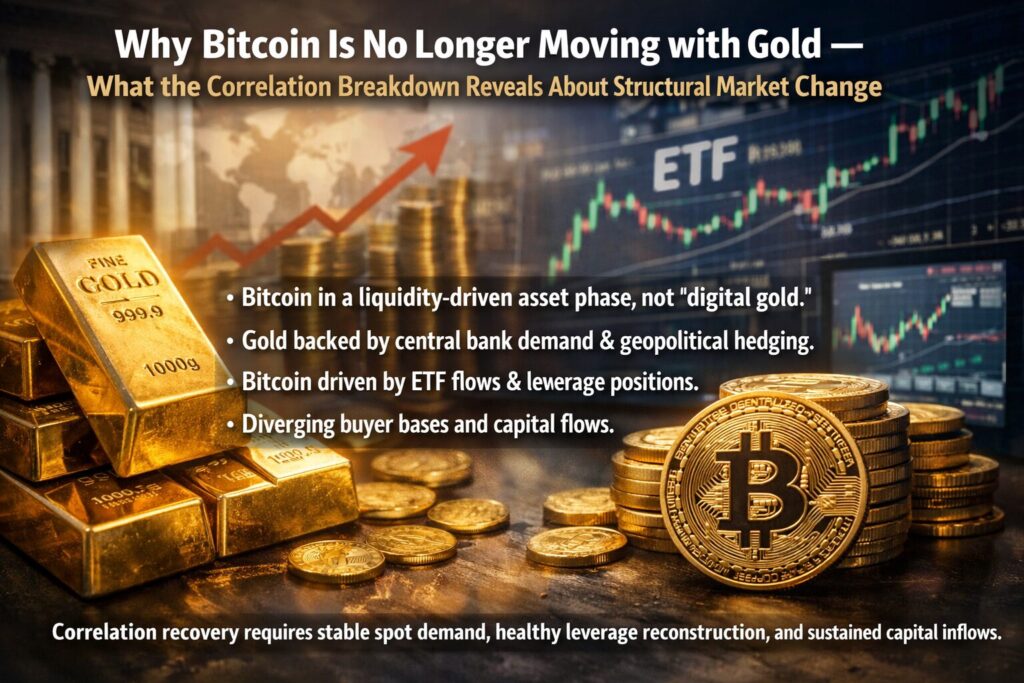 Why Bitcoin Is No Longer Moving with Gold — What the Correlation Breakdown Reveals About Structural Market Change
