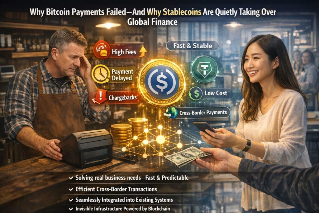 - Bitcoin payments failed because they did not solve real merchant problems such as fees, delays, and chargebacks.