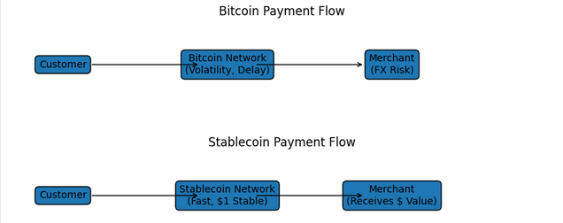 (Recommended: Stablecoin vs Bitcoin Payment Flow Comparison Diagram)