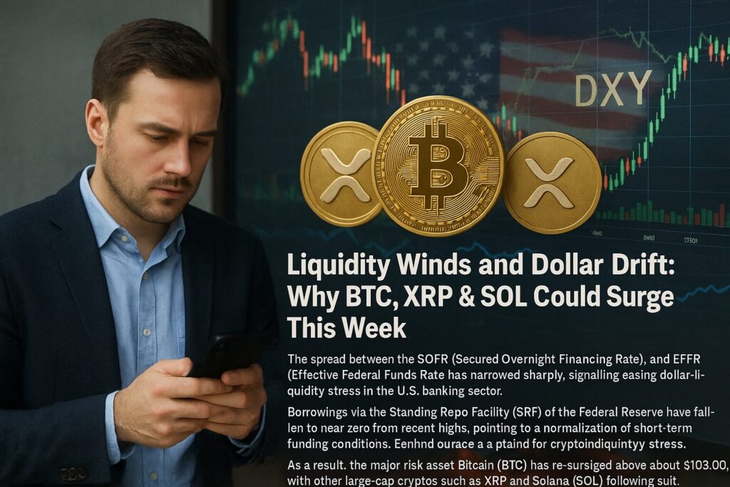 In summary: the macro-financial plumbing in the U.S. is showing signs of easing — the narrowing SOFR-EFFR spread, the decline in SRF borrowing, and the pause in the dollar’s rally all suggest a pivot toward more favourable conditions for risk assets. With that dynamic emerging, crypto assets such as Bitcoin, XRP and Solana are positioned to benefit — provided the key technical and flow thresholds hold.