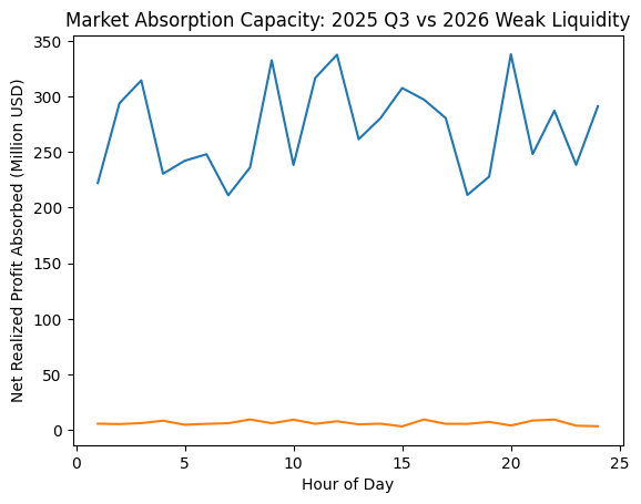 - In contrast, during Q3 2025, the market absorbed $200–$350 million per hour without breakdown.